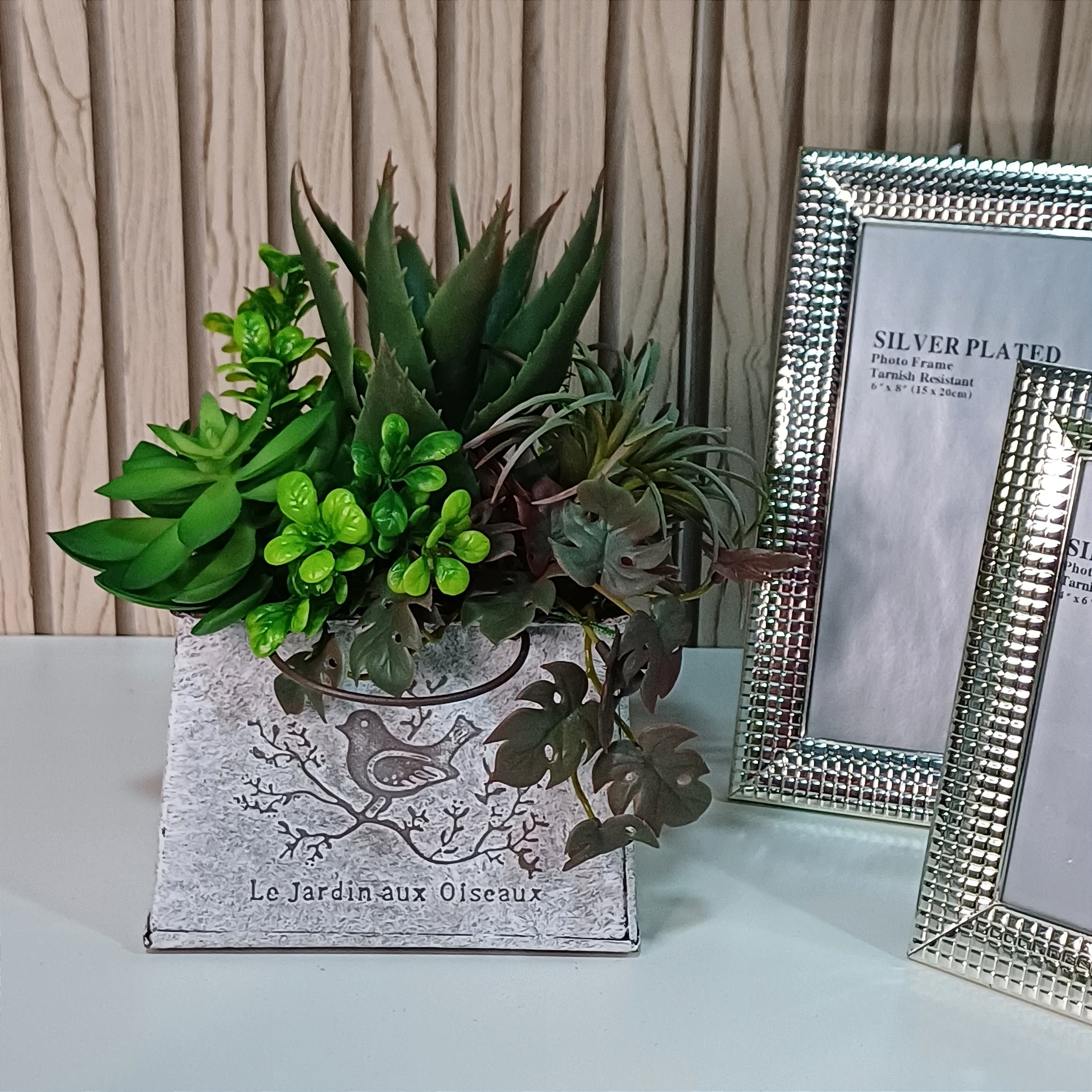 Este arranjo de suculentas artificiais montado em uma lata decorativa é a escolha perfeita para quem busca um toque de natureza e estilo moderno na decoração. Com folhagens realistas e uma base charmosa, traz frescor e beleza para qualquer ambiente.