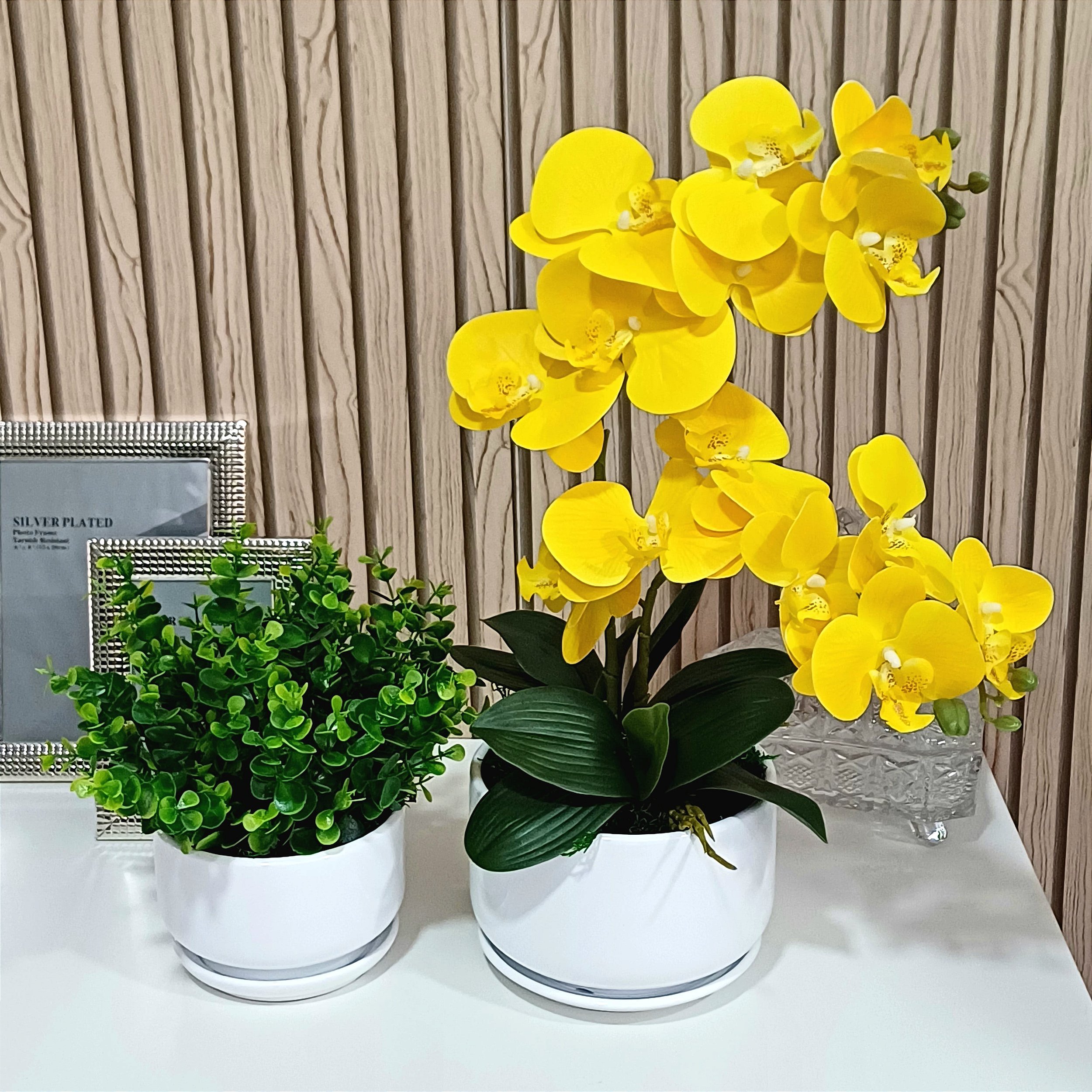 O Arranjo de Verdinho com 2 Hastes de Orquídea Phalaenopsis Amarela Camile é a escolha perfeita para quem busca beleza, leveza e sofisticação. As orquídeas amarelas, com sua cor vibrante e realismo impressionante, se destacam em conjunto com o frescor das folhagens de verdinho, criando uma composição equilibrada que traz vida e cor ao ambiente.