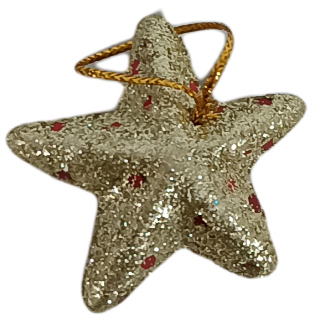 Dê um toque especial à sua árvore com estas delicadas estrelas de Natal em isopor, decoradas com glitter dourado e detalhes em vermelho vibrante. Perfeitas para pendurar ou complementar arranjos natalinos, elas trazem charme e brilho à sua decoração.