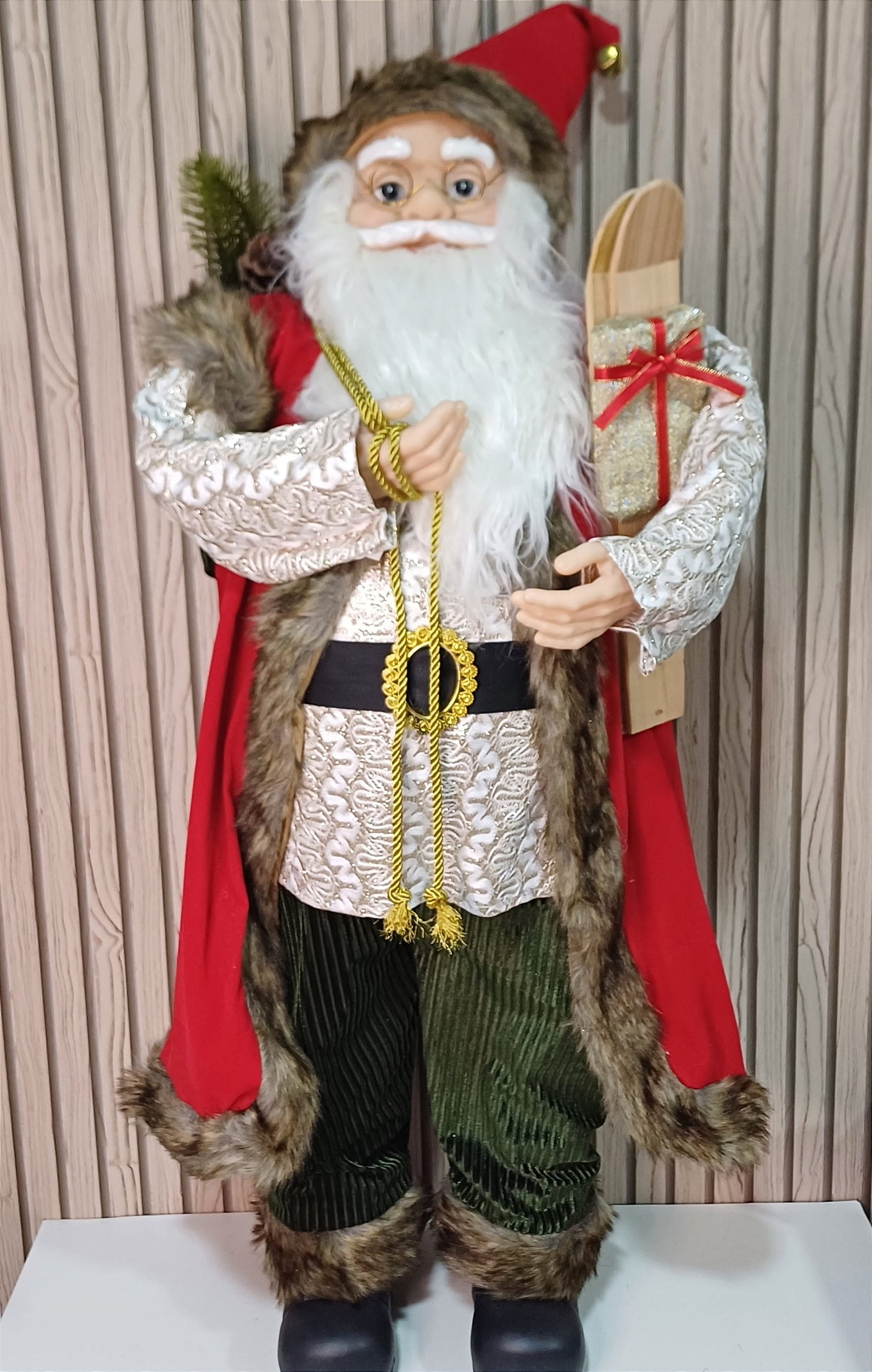 Deixe sua decoração natalina mais charmosa com este Papai Noel vermelho de 90cm, perfeito para ambientes menores ou para compor arranjos festivos.