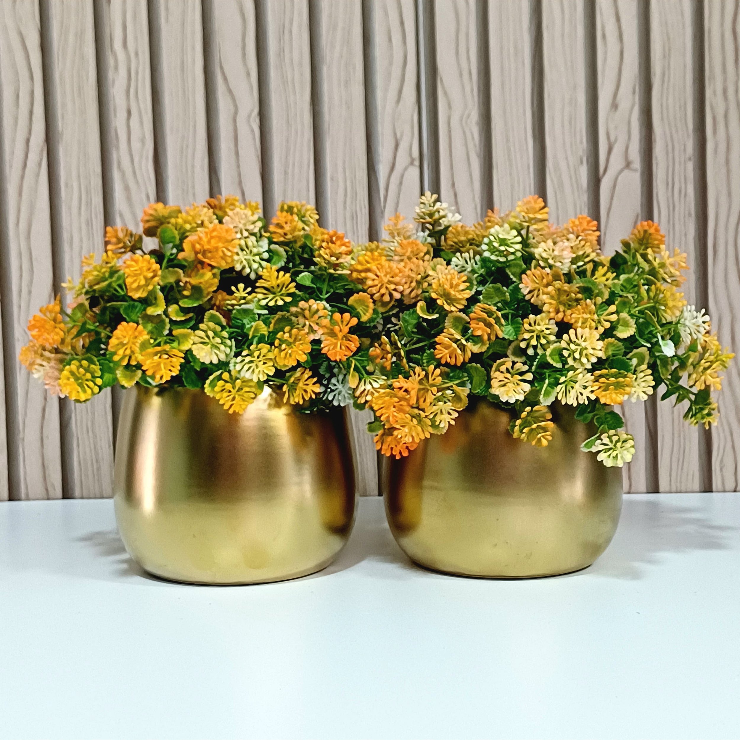 Adicione um toque de elegância e energia vibrante à sua decoração com os Dois Vasos Dourado Fosco com Buquê de Flores Alaranjadas Aninha. O acabamento fosco dos vasos oferece um charme sutil e moderno, enquanto as flores alaranjadas Aninha, com suas cores radiantes, trazem alegria e vida a qualquer ambiente.